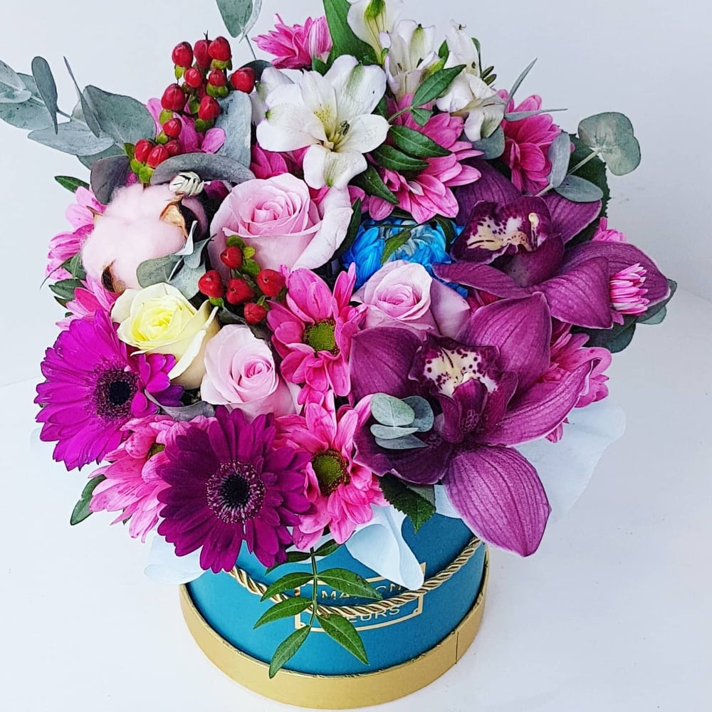 Hat box with flowers 'Flower riot'