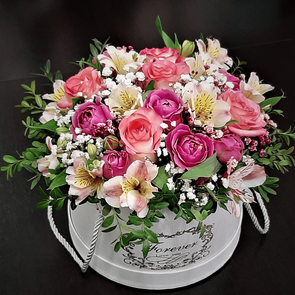 Arrangement 'Flowers in a hat box'