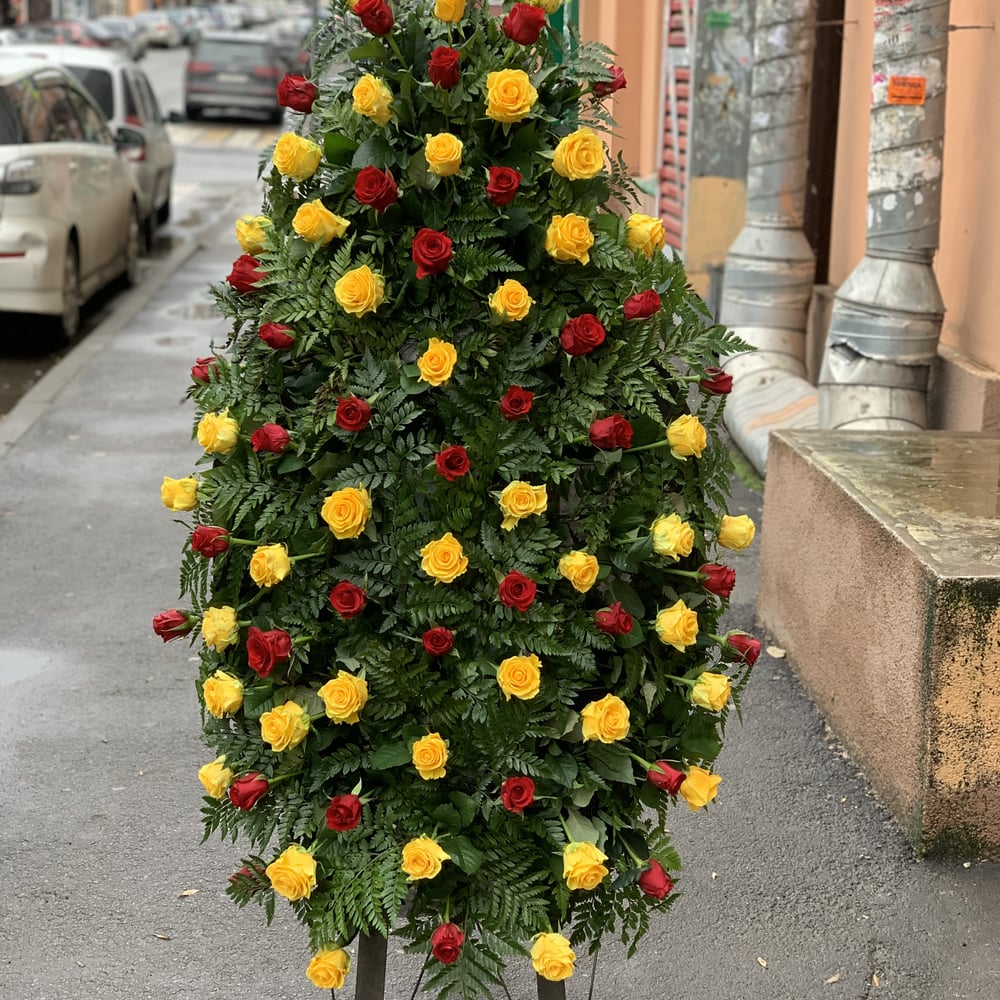 Funeral wreath in yellow and red shades