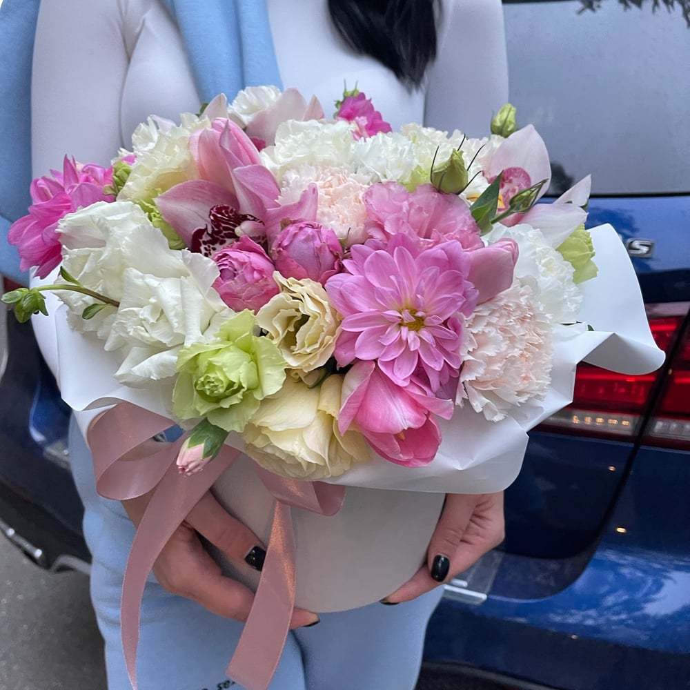 Hat box with flowers 'Gentle touch'