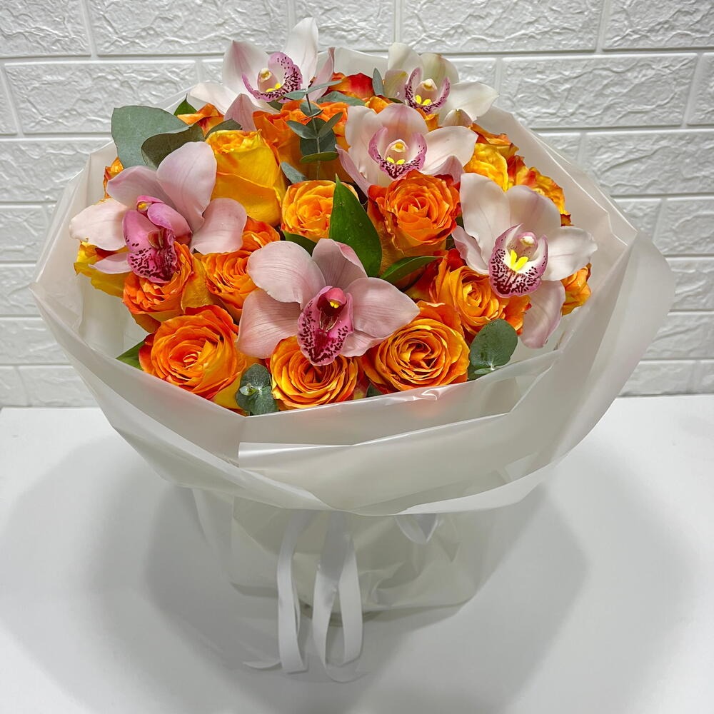 cymbidium - 6 pcs rescus - 5 pcs roses - 20 pcs