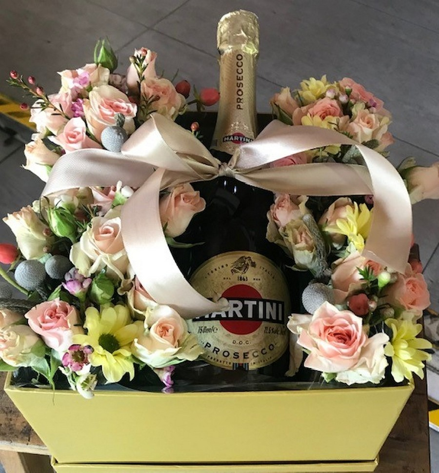 A great gift is champagne, framed with flowers. Your recipient will be happy.