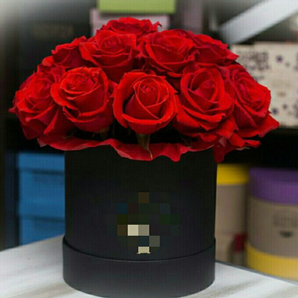 Hat box with flowers 'Hatbox with 11 scarlet roses'