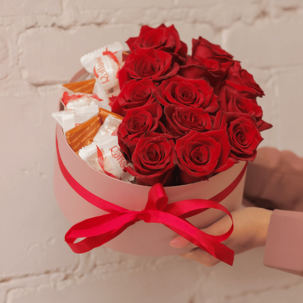 Hatbox with roses and sweets