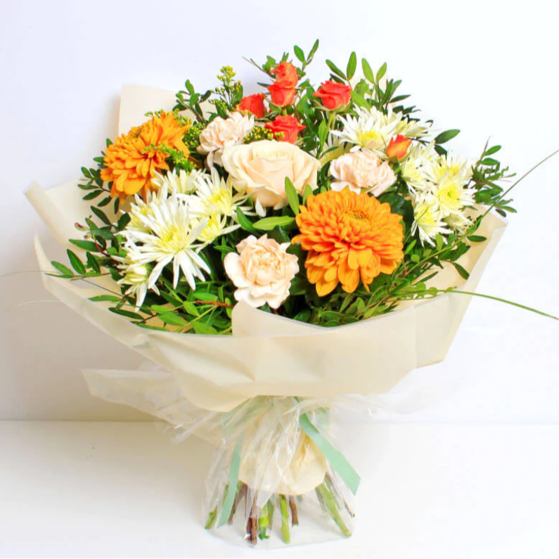 Our Hedgerow Bouquet is a beautiful mix of fresh flowers in a warm peach and apricot colour theme. Simple and chic, it is the perfect bouquet for those with an unconventional style.