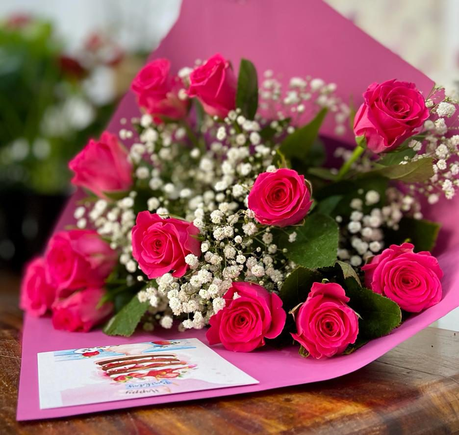 This is a great combination of roses and Baby's-breath