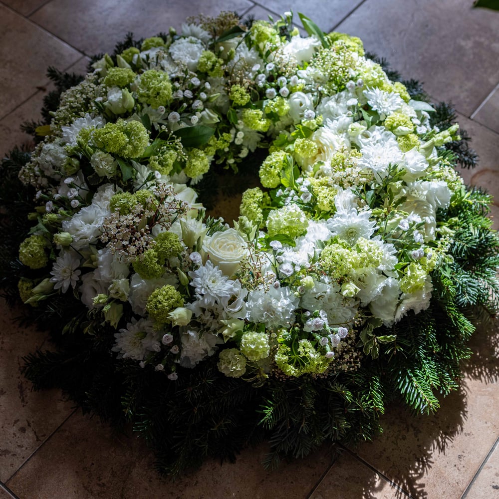 A wreath of fresh flowers for a funeral ceremony. It is necessary to order at least one working day in advance