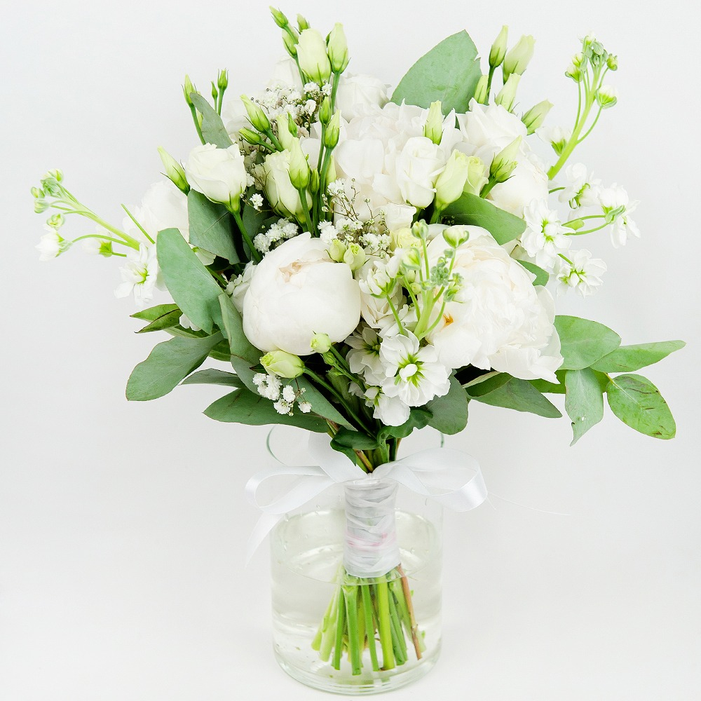 White and lacy, like a perfect wedding dress, this bouquet will perfectly complement the classic image of the bride and will remain a pleasant memory of the holiday.
