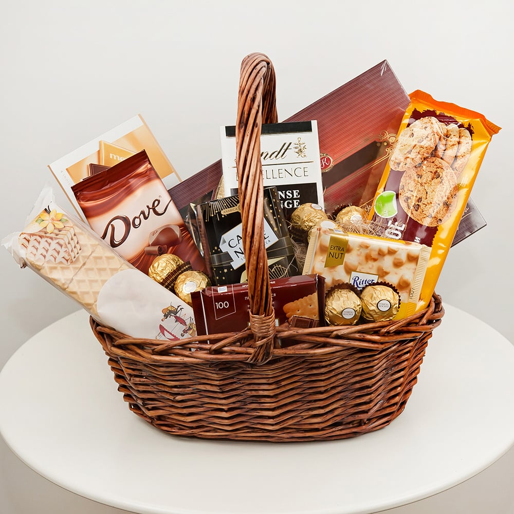 For a huge coffee lover in your life, we have prepared a gorgeous gift basket. Overflowing with assorted chocolate bars, mouthwatering confectionery, and treats to complement the taste of ground coffee and make your special recipient happy!