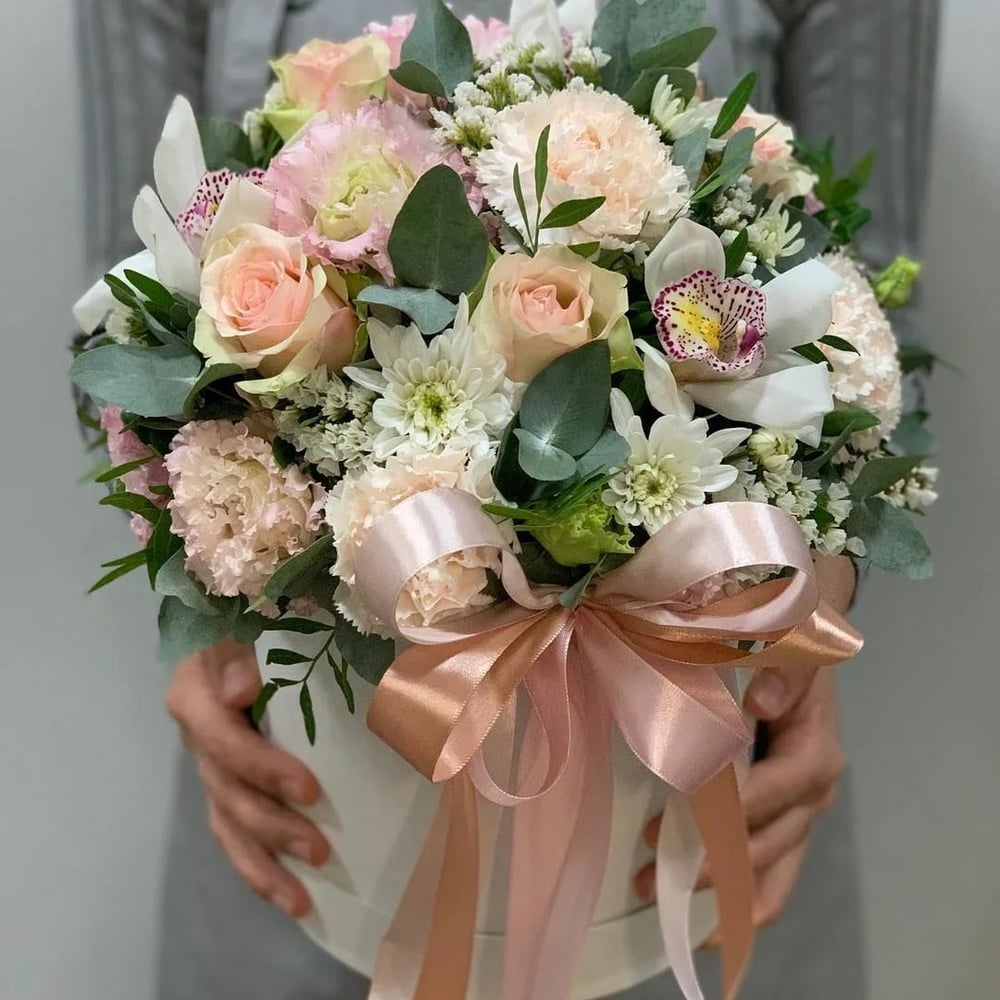 Hat box with flowers 'Mocha'