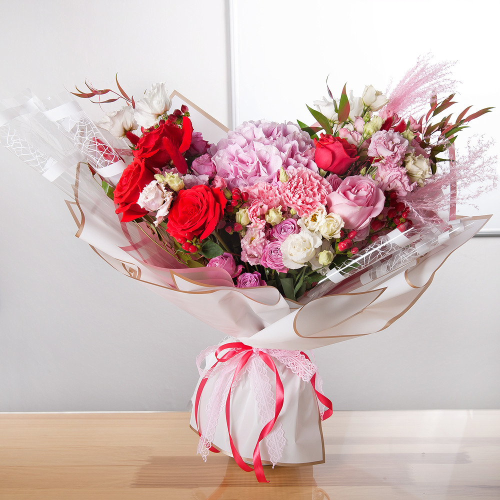 The bouquet "Natural Luxury" is the embodiment of elegance and sophistication, created from the most luxurious flowers. This bouquet will give the recipient a sense of harmony and peace, filling the space with a subtle fragrance and freshness. The "Natural Luxury" bouquet is created by experienced florists using only fresh flowers. It will delight the recipient with its beauty and aroma for several days. The "Natural Luxury" bouquet will make a wonderful gift for a birthday, wedding, anniversary, or celebration, and can also be used as a token of attention or gratitude. This bouquet is not only beautiful but also unique. It combines different shades and shapes, creating a unique composition that will emphasize your care and attention. The "Natural Luxury" bouquet can be arranged in stylish packaging, making it an even more convenient and practical gift.