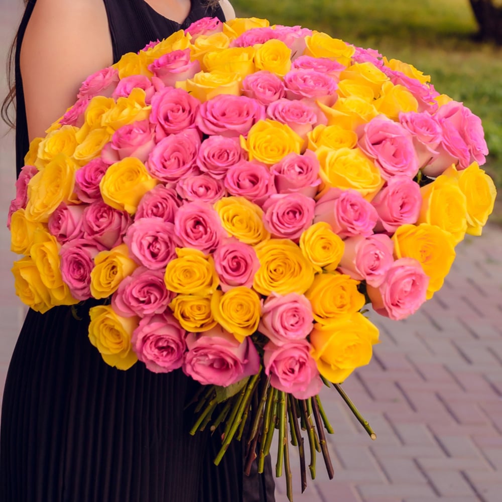 Bouquet 'Of yellow and pink roses, 101 pcs'