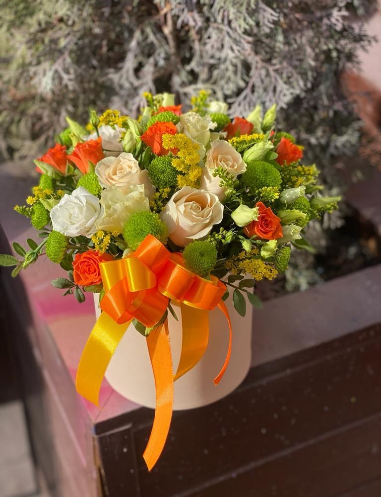 Hat box with flowers 'Orange paint'