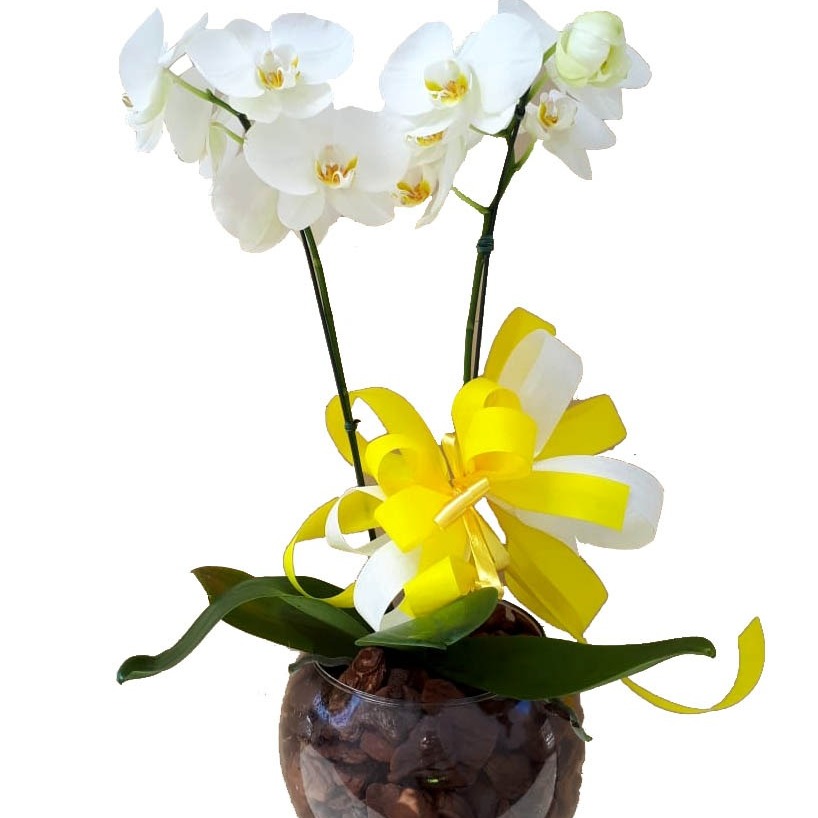 Orquídea branca no vaso de vidro