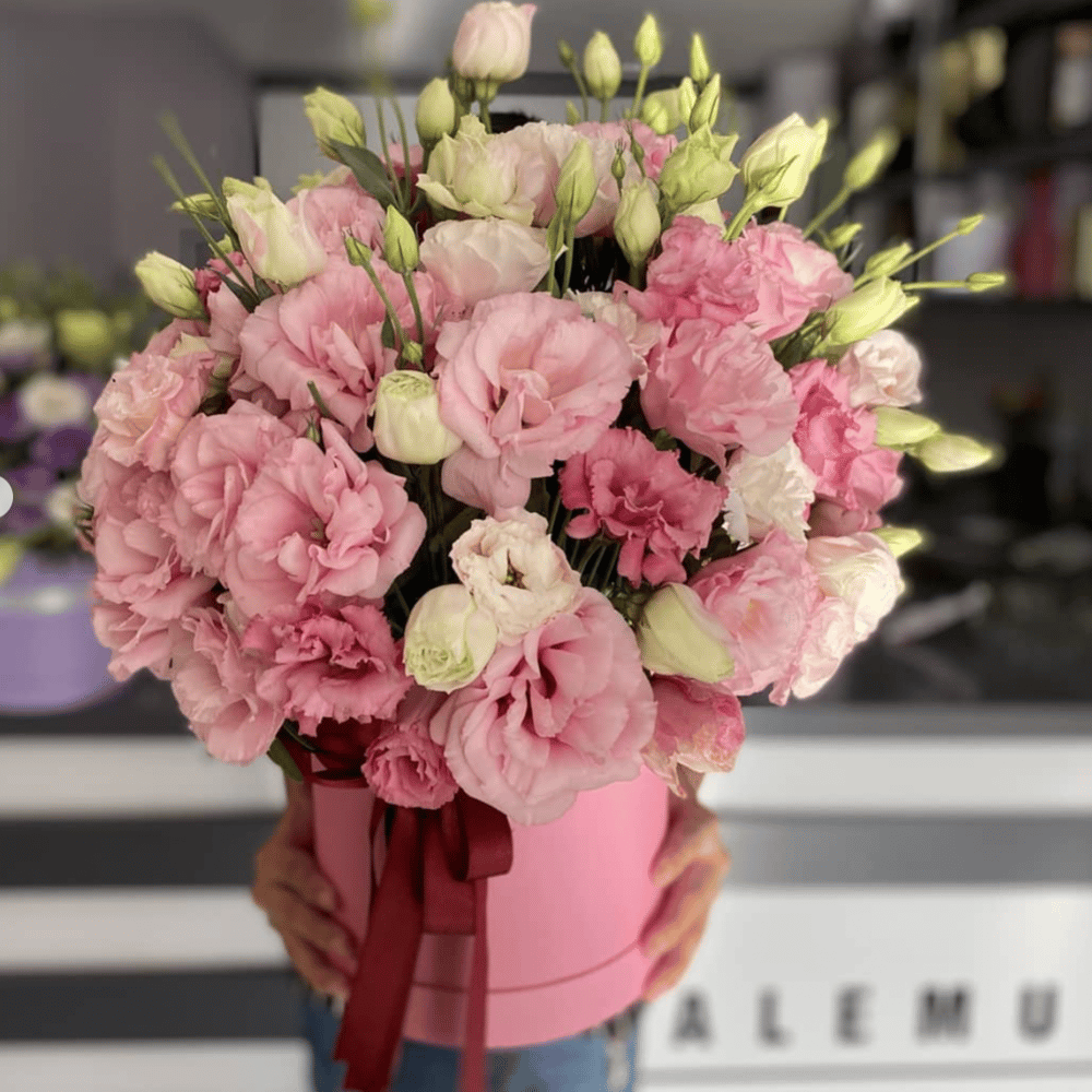 Hat box with flowers 'Pink dreams'