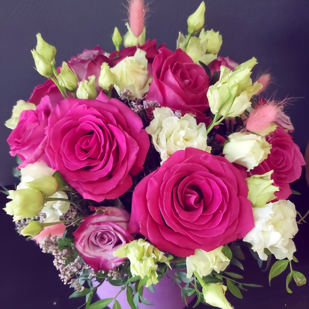 Hat box with flowers 'Pink sunset'