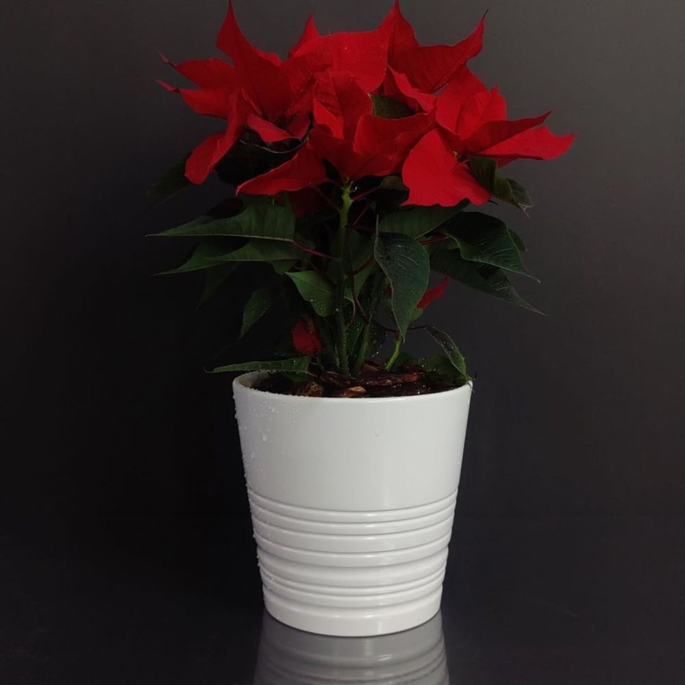 Poinsettia Plant in White Ceramic Pot