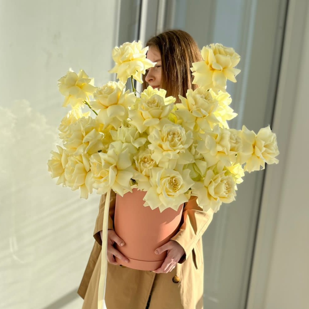 Hat box with flowers 'Pure feelings'