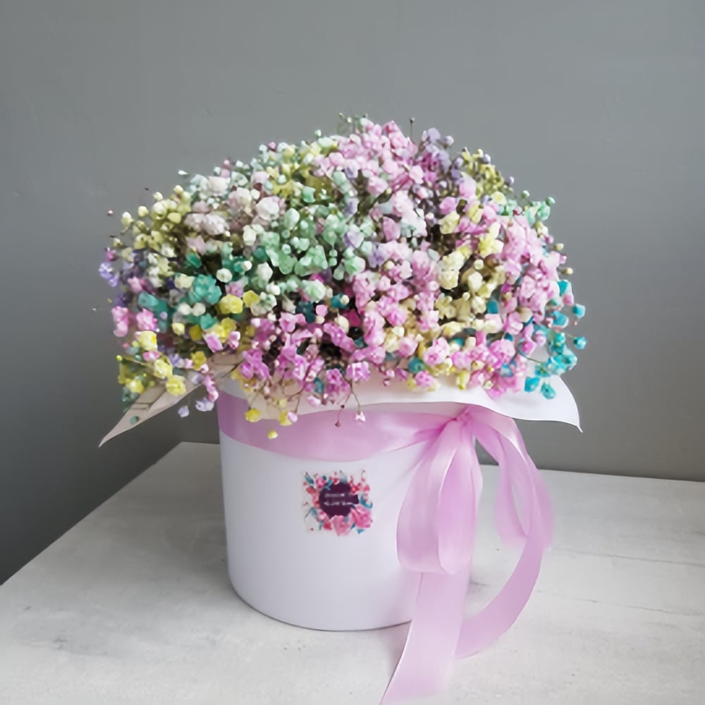 Hat box with flowers 'Rainbow in box M'