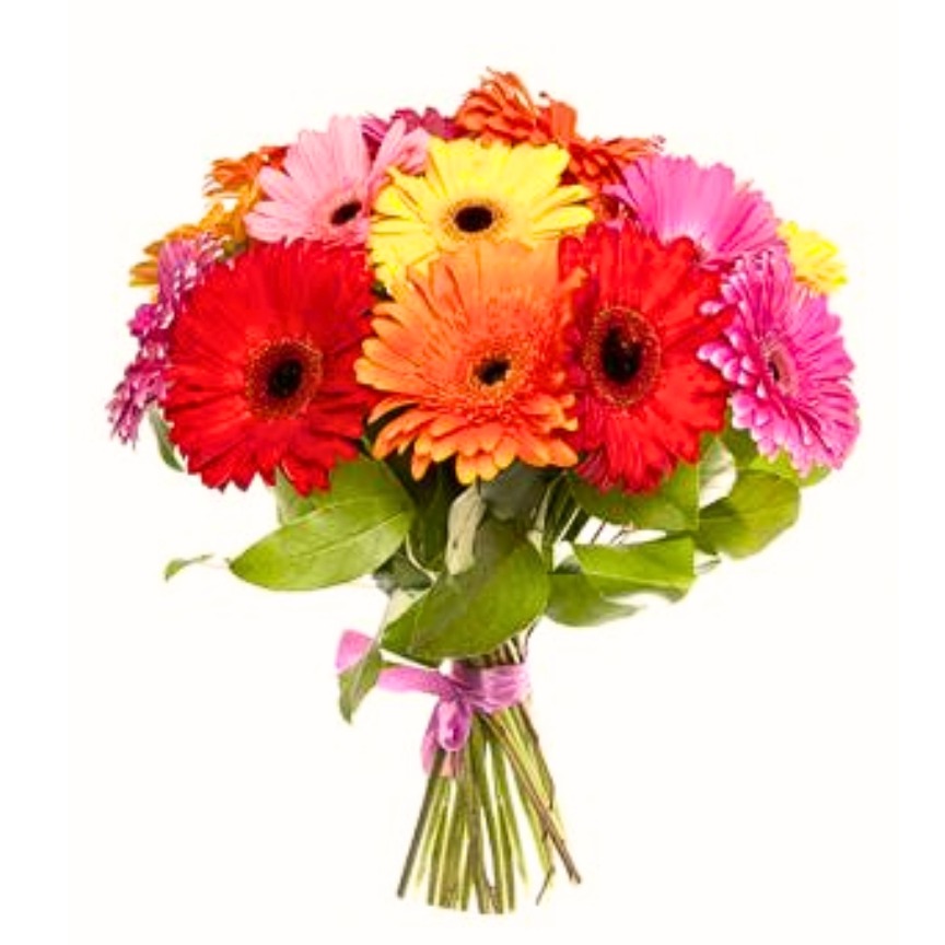 20 stems of mixed color gerberas in a bouquet.