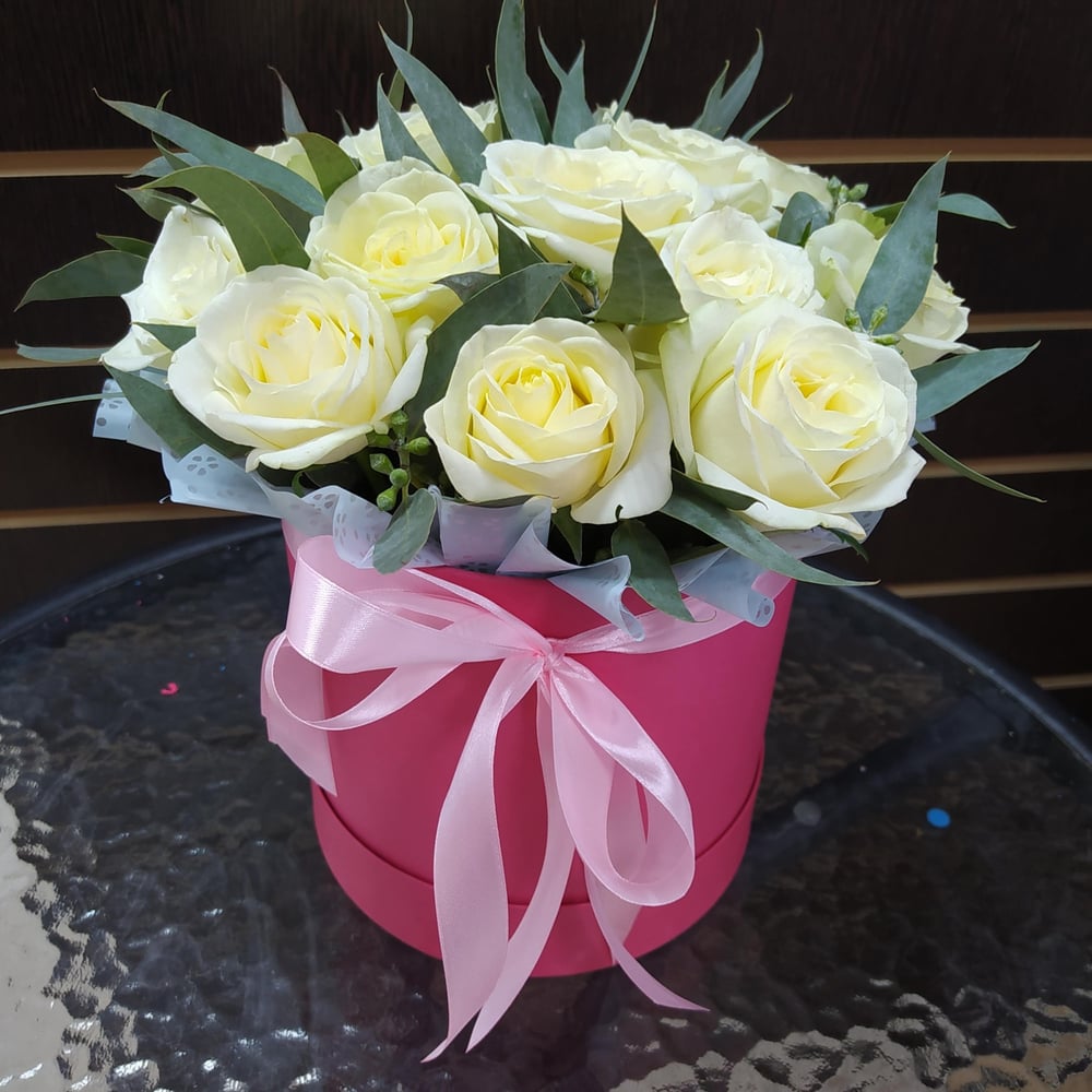 Hat box with flowers 'Raspberries with cream'