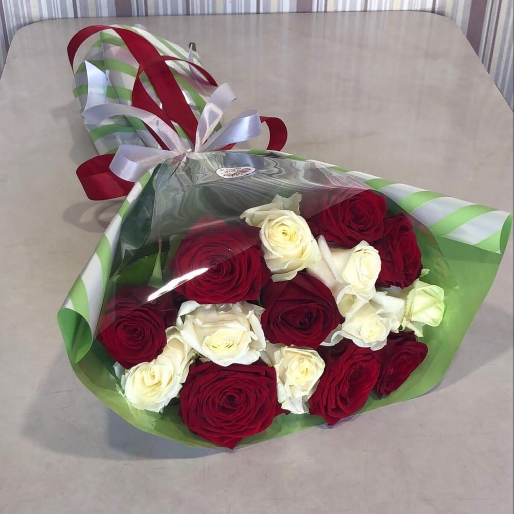 Bouquet 'Red and white roses 15 pcs (40 cm)'