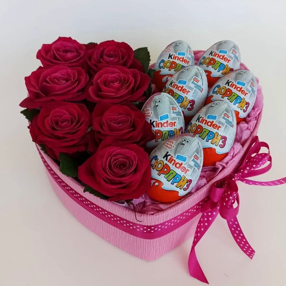 Red roses with kinder surprises