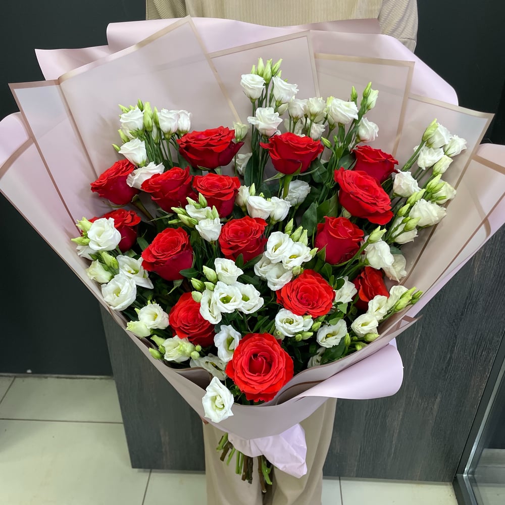 Bouquet 'Red roses with white eustoma'
