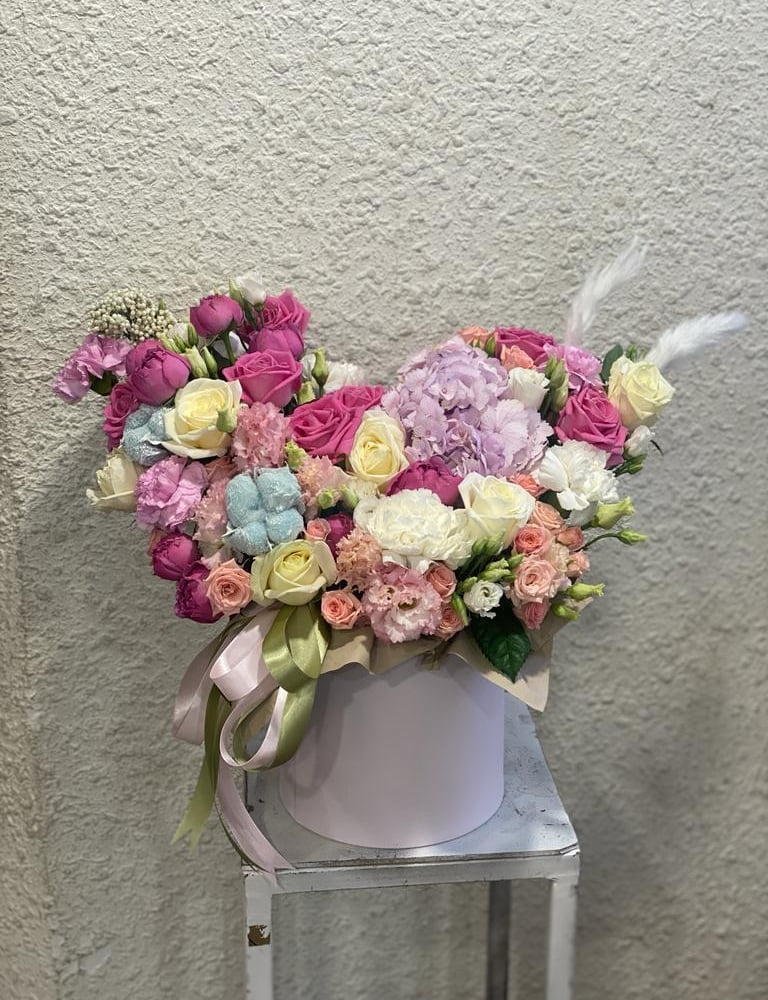 Hat box with flowers 'Schneewalzer'