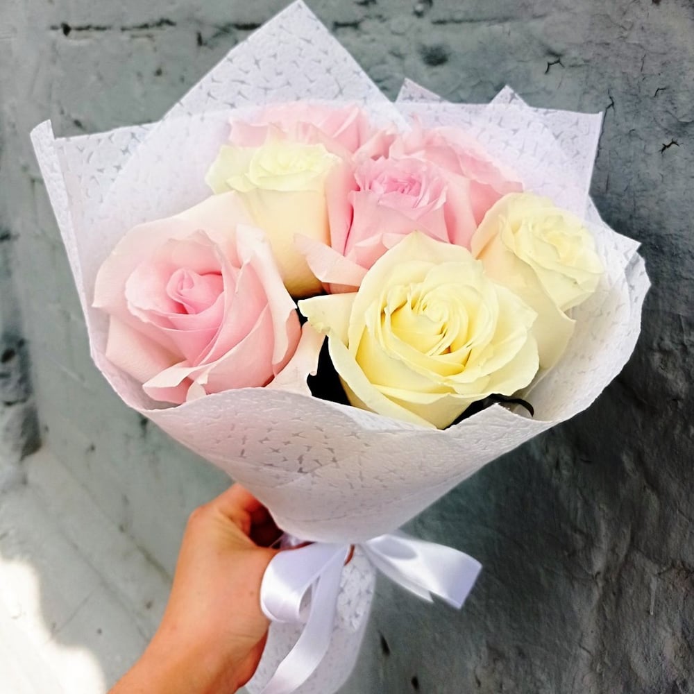 Bouquet 'Seven white and pink roses'