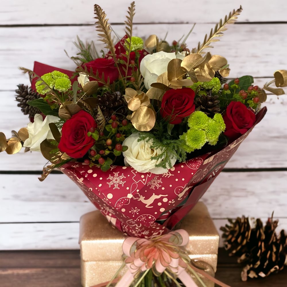 The Christmas rose bouquet is the perfect gift to convey love and joy during the holiday season. It is composed of high-quality red and white roses, which symbolize love and passion, combined with de…