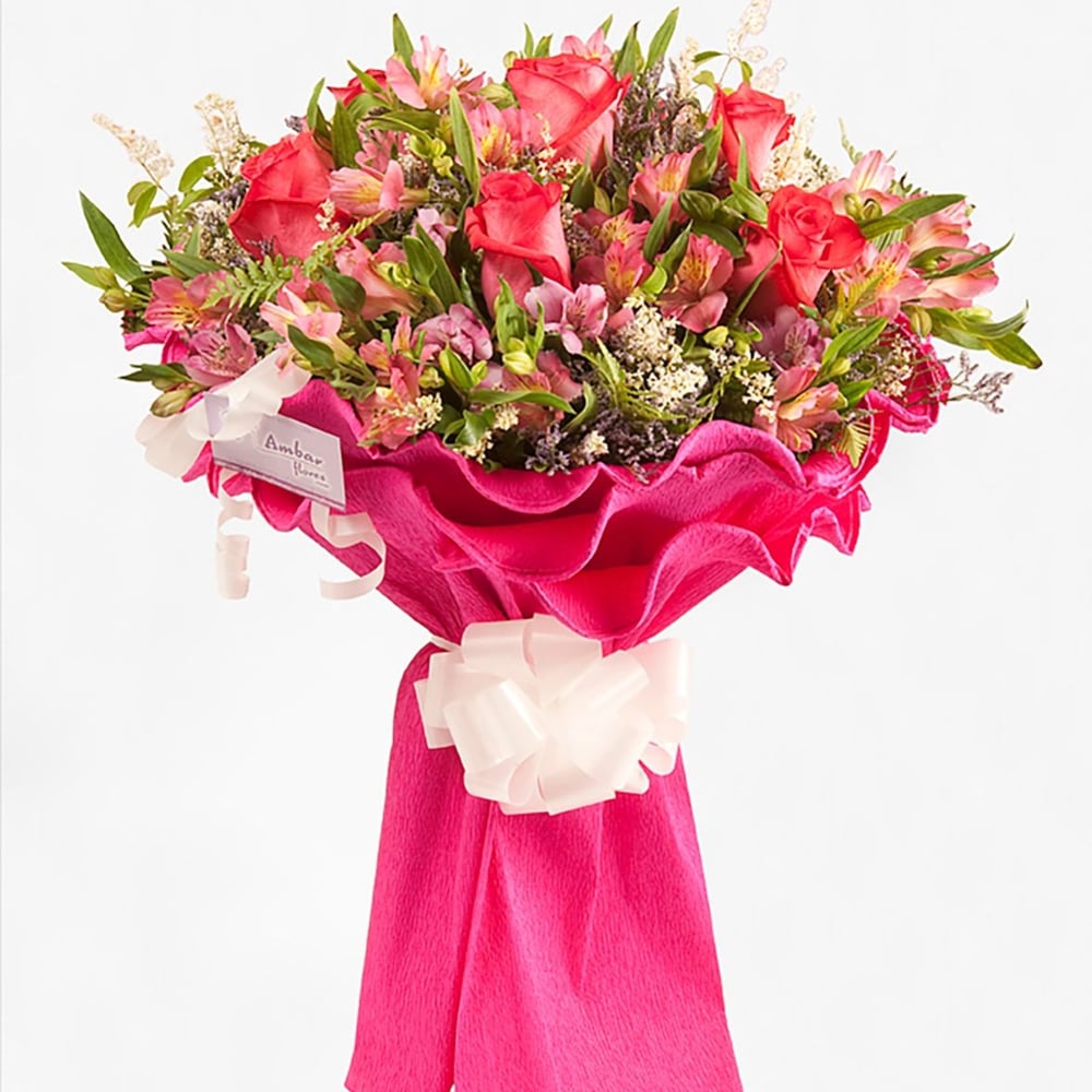 The Special Roses & Alstroemerias Bouquet. An elegant blend of roses and alstroemerias that symbolizes love and beauty. Decorated with eucalyptus and gypsophila, this bouquet strikes the perfect ba...