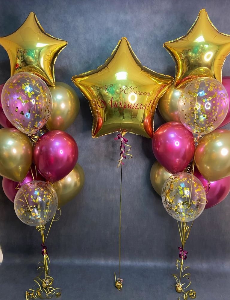 Star balloon with two fountains of balloons