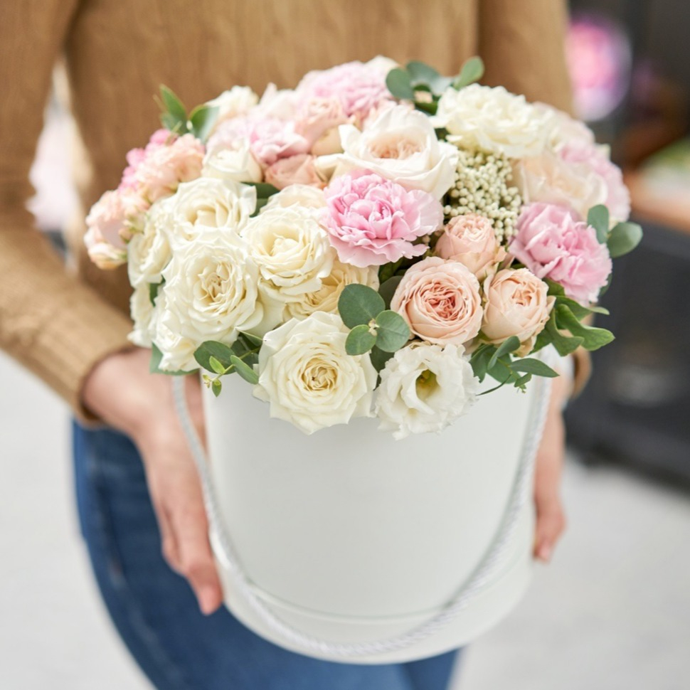 Hat box with flowers 'Strauchrose Hutschachtel'