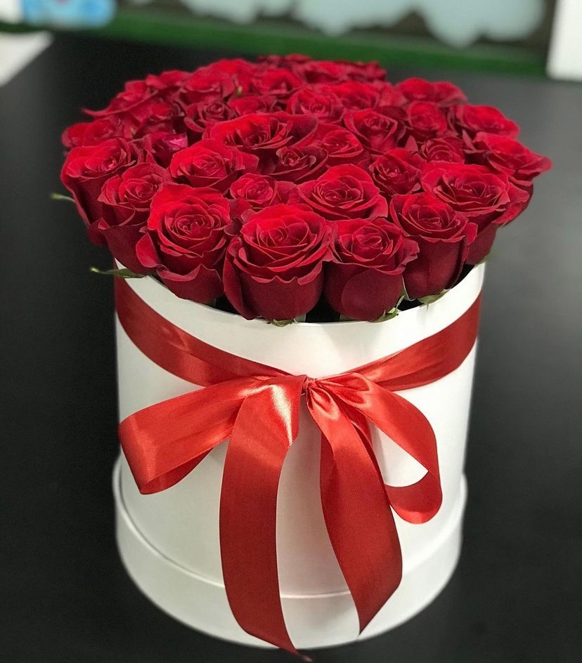 Hat box with flowers 'Sweet kiss'