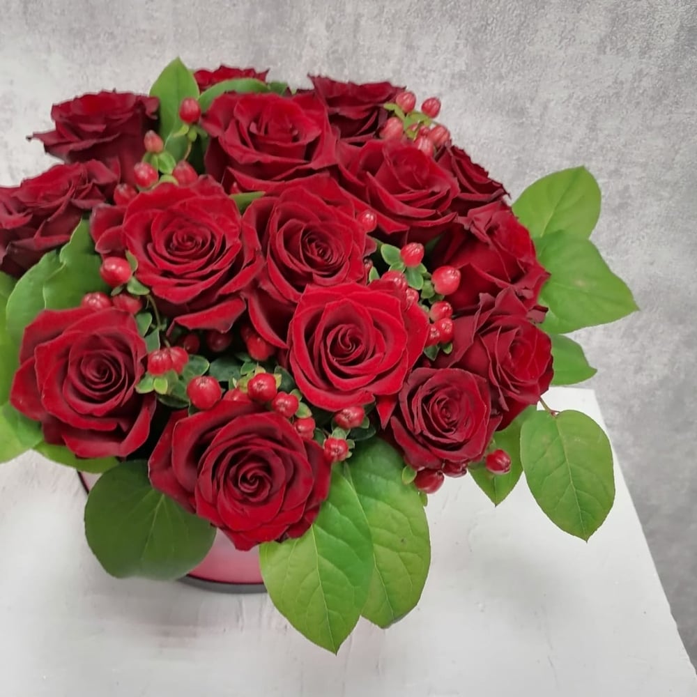 Hat box with flowers 'Tango of love'