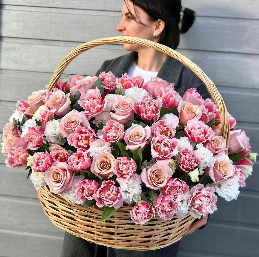 Flower basket 'Tulips in the snow'