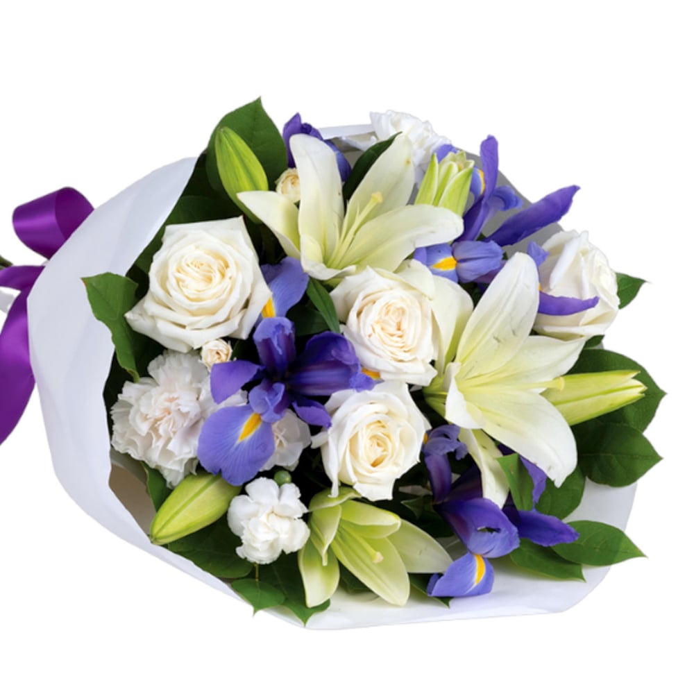 Capture the magic of twilight with this enchanted array of luxurious lilies, roses and iris