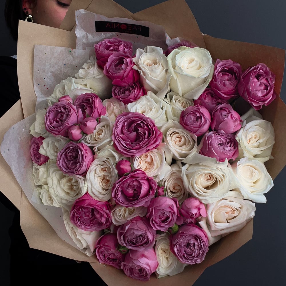 Bouquet features roses mix, stock, etc.. The size is Medium. The high is 50cm. Note: We are working with the fresh seasonable flowers, so the composition of the bouquet may a bit vary. ...