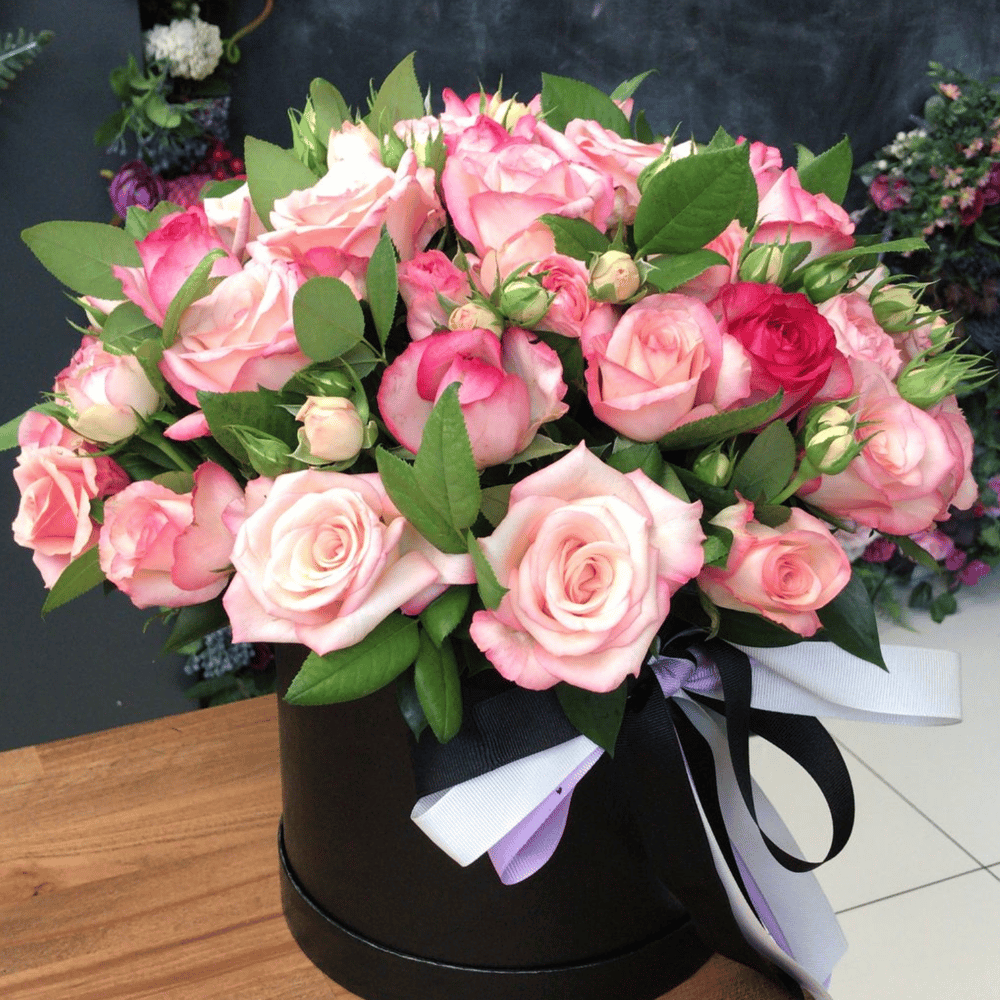 Hat box with flowers 'Warm meeting'