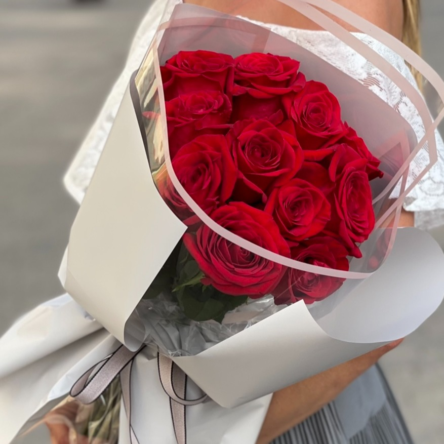 The unforgettable bouquet consists of 11 red roses in decorative packaging.