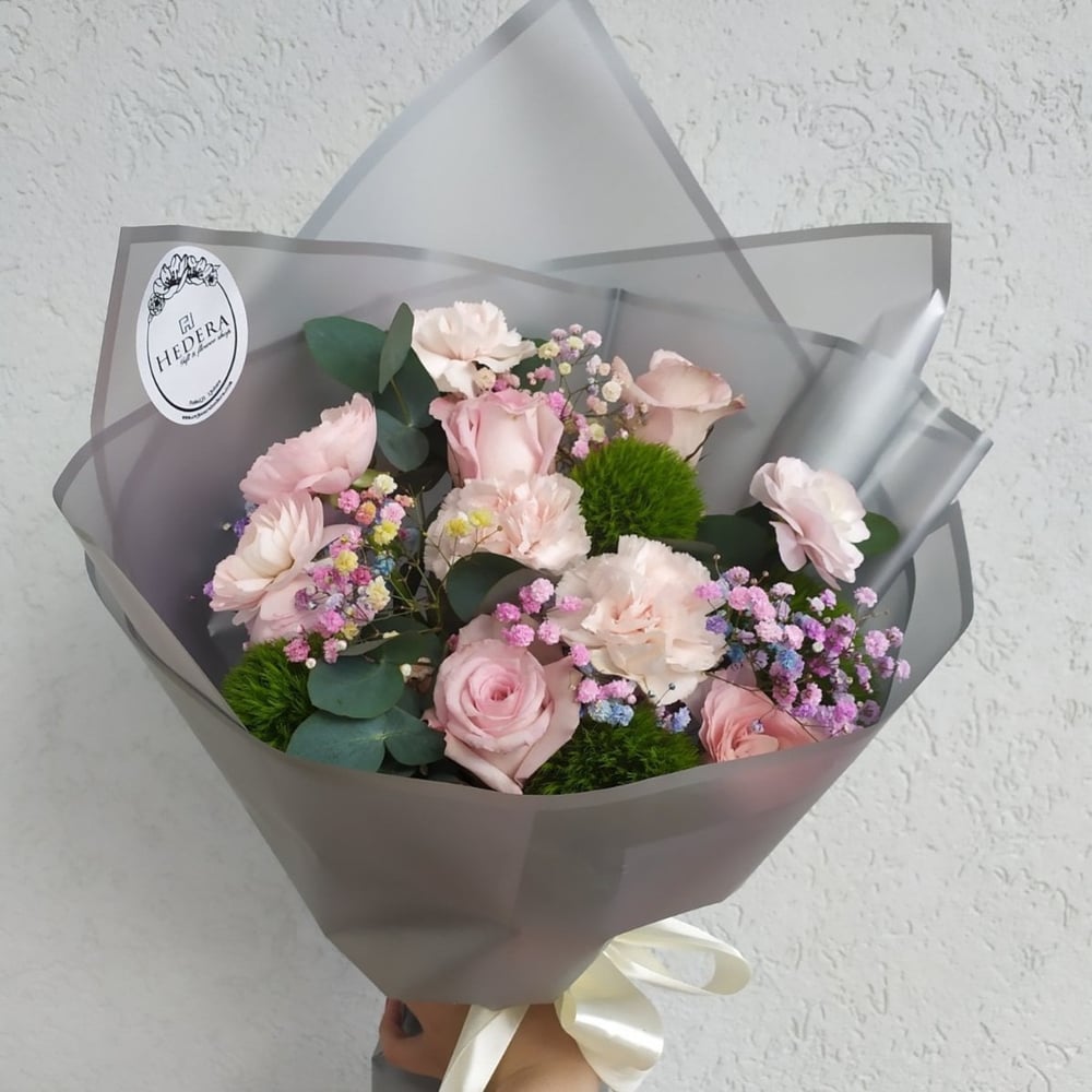 Delight your loved ones with a delicate bouquet of roses and carnations.